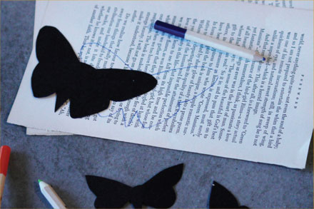 2. Stack two papers together and cut out the butterflies, keeping each butterfly pair together. Depending on the size of your templates, you will need anywhere from 12-20 butterfly pairs.