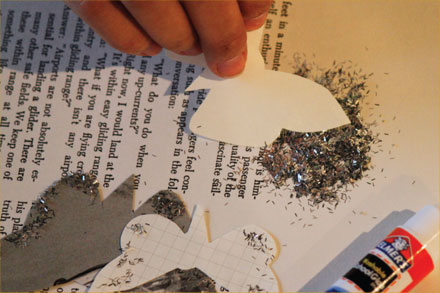3. (Optional step)When you’ve cut out your pairs, apply glitter to the wings of one of the butterflies in the pair.