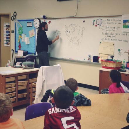 Cory's presentation to the kindergarteners, however, quickly turned into a game of pictionary. "Draw a snake!" "Draw a dog!"