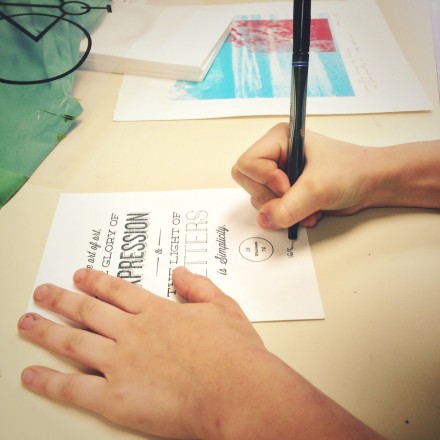 Numbering and signing their prints.