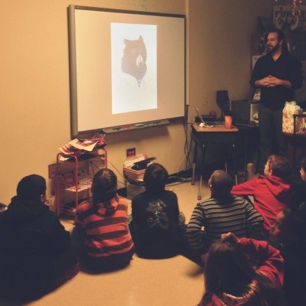 Cory shows the 4th grade class how he paints digitally. They were completely mesmerized by his work...particularly with this video that he designed and animated. They couldn't get enough of it.