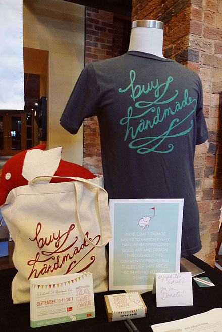 Here's a few shots of the Indie Craft Parade Booth! We had our fabulous merchandise, free temporary tattoos, sign-up sheets for volunteering, participating, or sponsoring next year, and free felt flags for the kiddos.