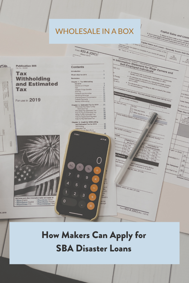 How to Apply for SBA Disaster Loans Mar 23 Written By Emily with Wholesale in a Box outlines the terms for SBA Disaster Loans and how makers can apply for them. funding
